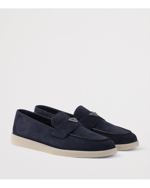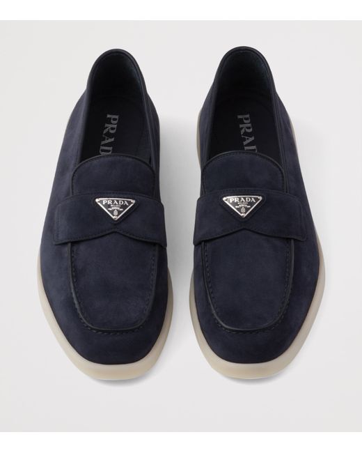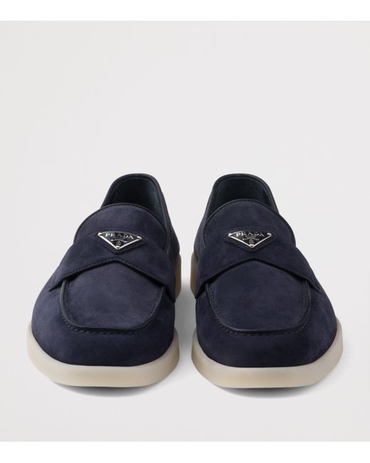 Across every collection, versatility is at the heart of Prada's designs. These loafers present a modern silhouette with their streamlined profile imagined in a soft suede upper sitting atop a rubber sole, adding a casual character to the functional pair.