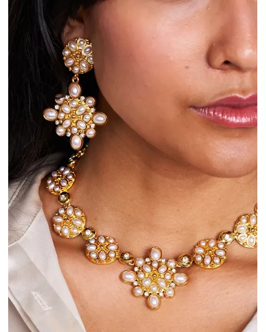 Glass Pearl Crystal Flower Multi-Strand Necklace