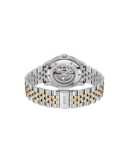 Classic elegance meets Japanese precision in the Principle Skeleton, a sophisticated addition to the bestselling Principle range from Boss Watches. The watch is powered by a Miyota 8N24 automatic movement with a 42-hour power reserve and designed with a skeletonized dial and exhibition case back. Style 1514237