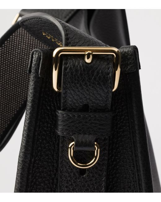This shoulder bag presents a compelling duality. One side whispers of the brand's refined aesthetic, showcasing its signature clean lines in robust leather, proudly punctuated by the iconic logo. The other introduces a dynamic contrast with a woven shoulder strap, lending a distinctly sporty edge to the classic silhouette.
