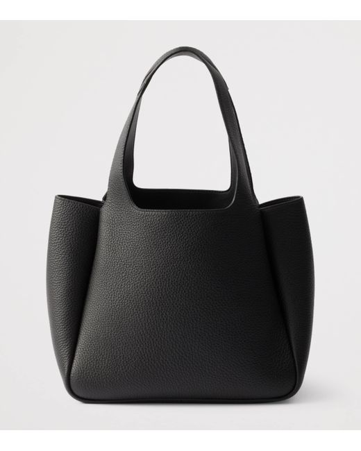 Unstructured and soft thanks to the reverse stitching, this tote bag offers a premium Prada feel thanks to the grained calfskin body. The Triangle logo is pared-back on this sleek silhouette, with gold-tone lettering placed within tonal top-stitching that complements the rounded edges of the profile.