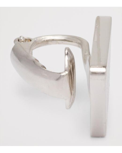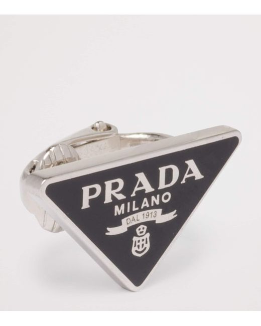 Introduced in 1913 by founder Mario Prada as a mark of quality and craft, Prada's Triangle logo symbolises the House's ethos of exemplifying simplicity over excess. Here, the historic emblem is reimagined in enamelled 925 sterling silver as a single earring, channelling a contemporary, punk-inspired character with a minimalist sensibility.