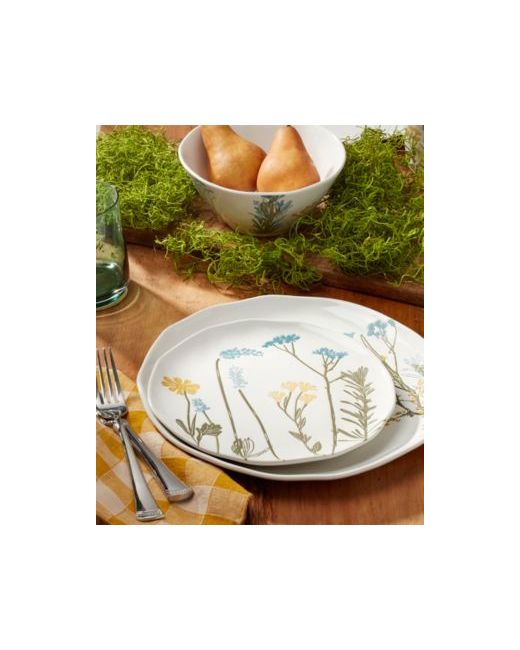 Perfect for updating your table for warmer seasons, these pretty stoneware dinner plates place simple blooms against a white expanse of sky, it's like a picnic blanket view with every meal. When spring is in the air or on your mind these fresh-as-daisies dinner plates will be on the table.