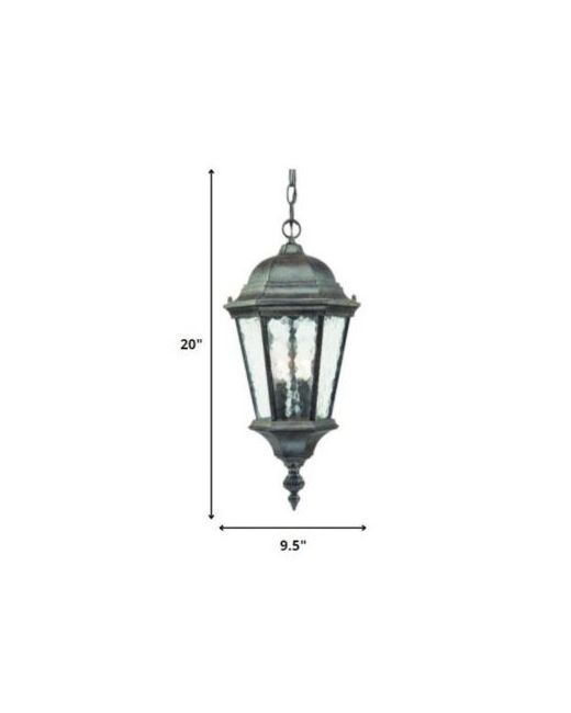 Your outdoor space will look even more elevated with this Two Light Antique Black Carousel Lantern Hanging Light. The design of this light is inspired by traditional carousel lanterns and features a simple chain which is attached to the top of the light. The carousel lantern has a sloping three tier roof which extends down into a straight tapered frame. The frame flows into a curved bottom which has a round ornament shape at the end. The frame is finished in an antique black color which looks great against the hammered glass panels that sit inside the frame. There are two bulbs inside for added brightness. Use this light in your backyard, on your shed, your garage, or around your front door in pairs.