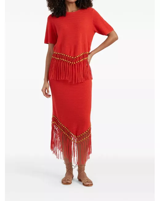 lava orange rear teardrop fastening fringe detailing round neck short sleeves