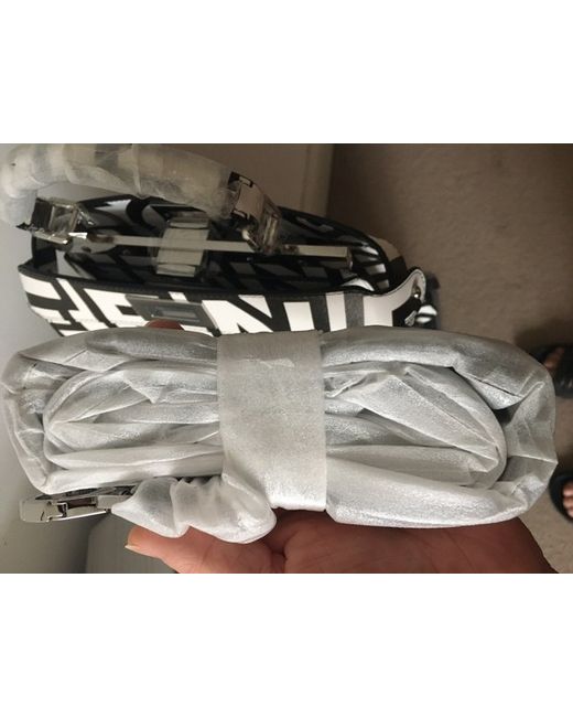 This Fendi Peekaboo bag in small size is a stylish handbag and crossbody accessory for women. Crafted from white and black leather, it features a luxurious leather lining and handles/straps for a sophisticated touch. The Fendi brand logo adds a signature element to the design, making it a chic and fashionable choice for any outfit or occasion.