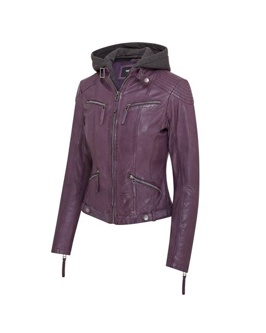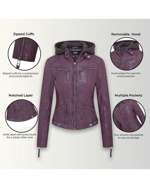 Introducing our stunning leather biker jacket, complete with a zip-out jersey hood for added versatility. The YKK zip front extends to a tab collar secured with a buckled strap, while tramline stitching at the shoulders and elbow patches enhance the biker aesthetic.