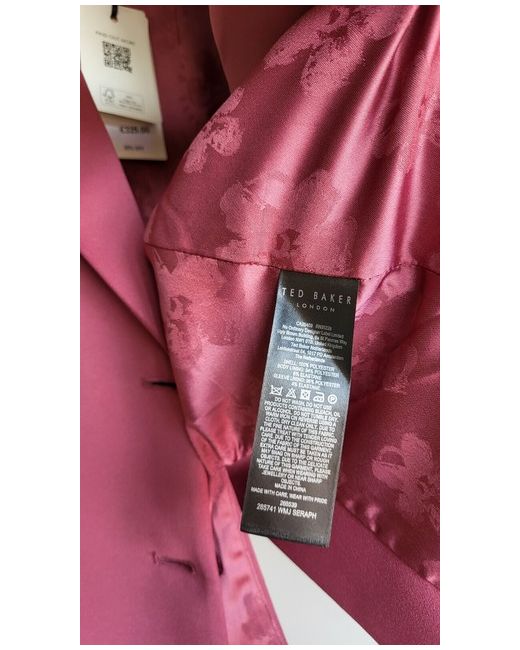 Ted Baker stunning blazer brand new with tag Size 0 = UK 6 will fit size 6-8 This knockout blazer is perfect for elevating looks from casual to smart, and features a satin-feel fabric, peaked lapels and double breasted buttons. Satin blazer Boyfriend cut Peaked lapel Double breasted buttons Long sleeved Jacquard magnolia lining