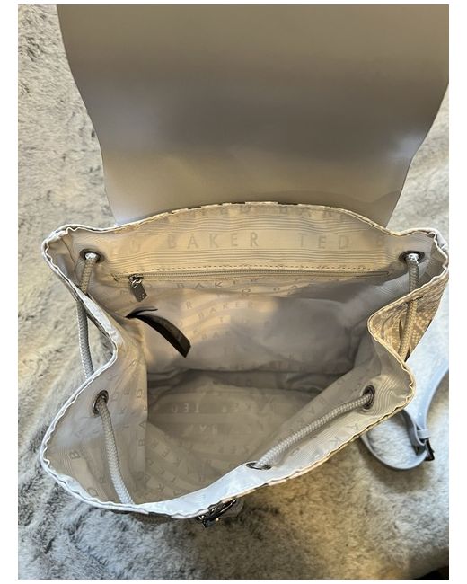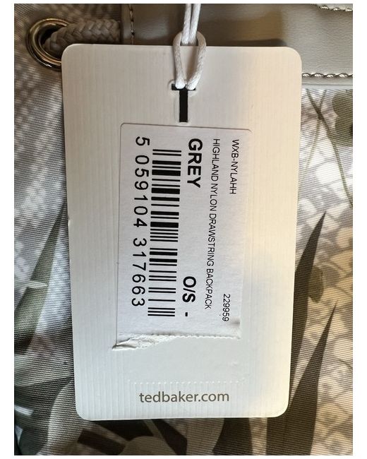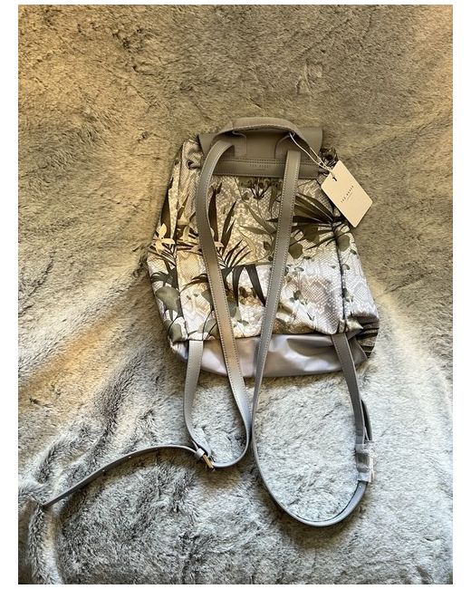 This new Ted Baker Nylahh Everglade Highland Backpack features a floral exterior in small size. It has a drawstring closure with a grey handle/strap and silver hardware. The lining is white polyester, and the exterior is made of polyester material. Designed for women, this stylish backpack is perfect for everyday use. Product Features Top handle, 2" drop Adjustable backpack straps Dimensions: 13.5"W x 11.5"D x 3.5"H Magnetic snap & drawstring closure Interior zip pocket Lined Shell: 100% polyester; trim: 100% polyurethane; lining: 100% polyester