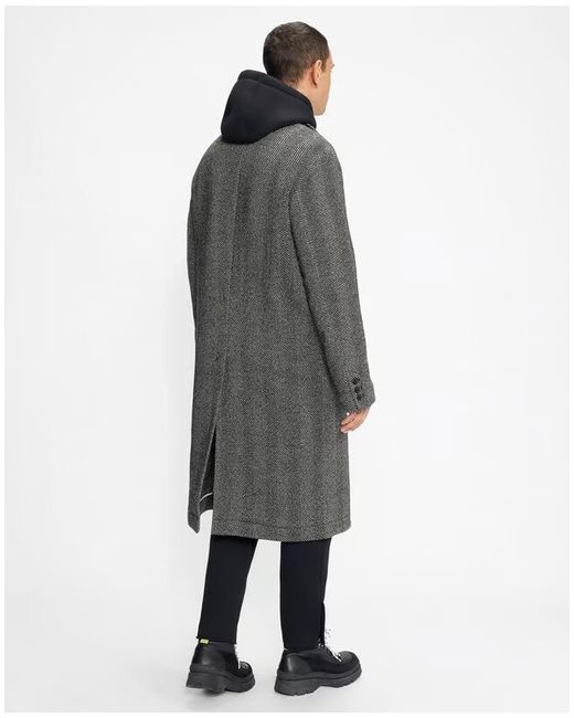 Herringbone Long Line Coat Button Smart Wool TB 3 4 425