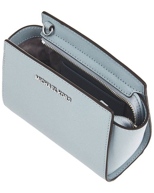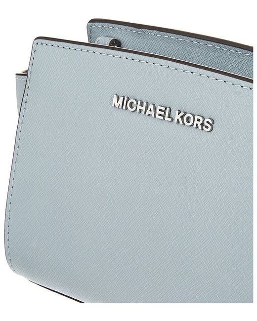 MICHAEL Reagan Leather Mini Messenger Bag Pearl Grey