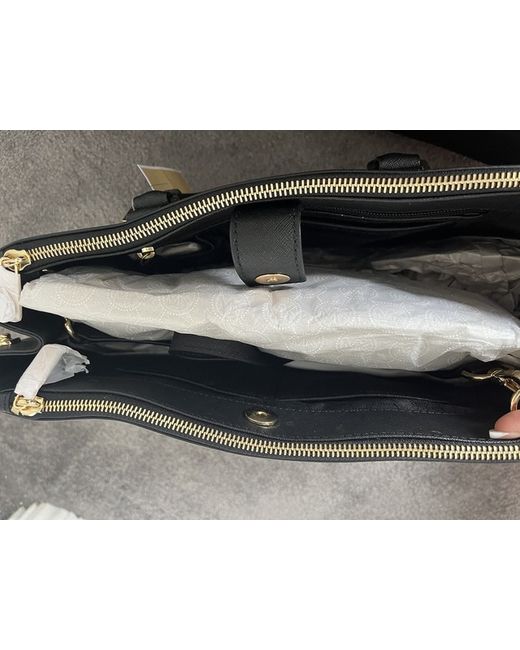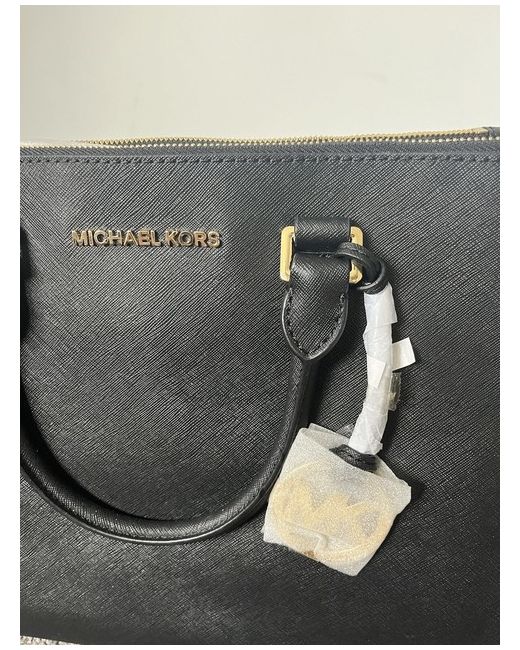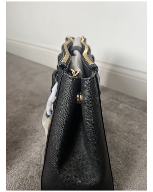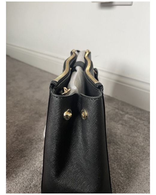Elevate your style with this stunning Michael Kors shoulder bag, featuring a sleek black handle/strap and exquisite gold accents. Crafted from supple leather, this bag is perfect for any occasion, whether you're running errands or hitting the town. The luxurious gold lining adds an extra touch of elegance, while the spacious interior provides ample room for all your essentials. With its timeless design and premium materials, this Michael Kors bag is sure to impress. Can be used as a Tote, cross over or shoulder bag. Comes with long strap attachment and a bust bag. (Other colours on my page)
