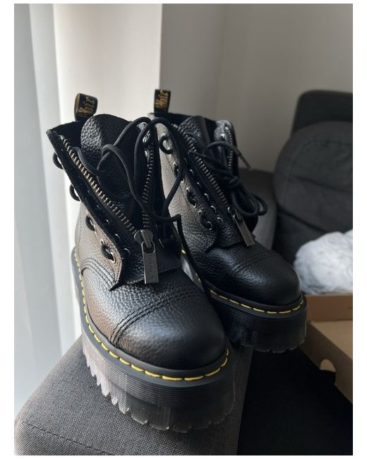 The Dr. Martens Sinclair Women's Boot in size 5 UK is a stylish ankle boot with a zip closure and lace accents. Made from leather with a rubber insole, it features a wedge heel and a 1.5-inch platform height. Perfect for casual occasions, this black bootie from the renowned Dr. Martens brand offers a trendy and comfortable option for women looking to make a statement with their footwear.