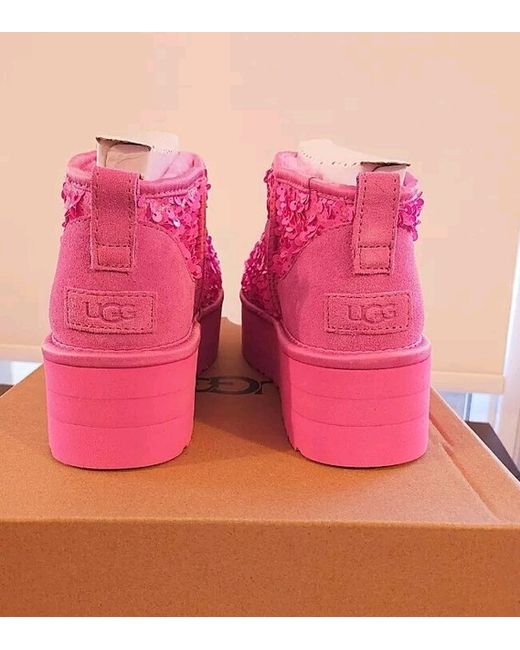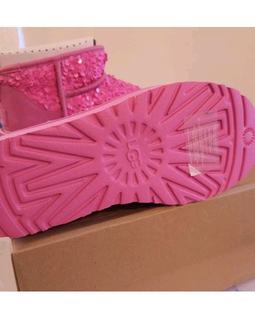 The Classic Ultra Mini refreshes our most iconic silhouette with a lower shaft height, adding easy on-off and enhanced versatility. Treadlite by UGG™ outsole for comfort. Suede heel label with embossed UGG® logo.