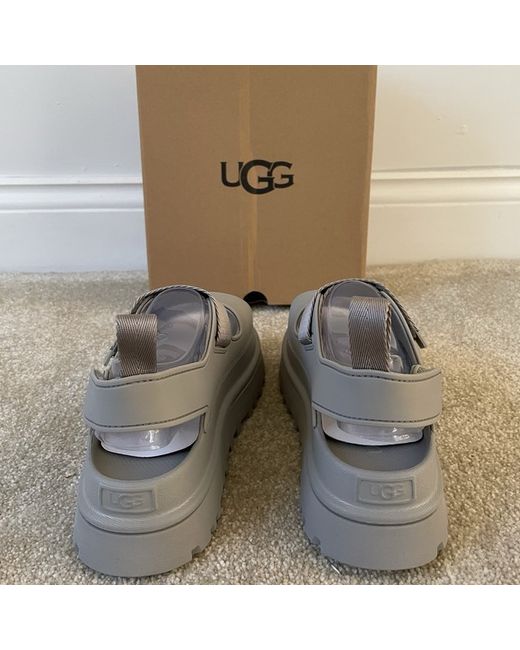 Step out in comfort and style with these sleek W GoldenGlow Uggs, a perfect blend of fashion and function for the discerning woman. The grey platform boots feature an innovative sugarcane EVA upper, known for its durability and lightweight feel, providing a comfortable fit that's ideal for day-long wear. With a UK size 4, these UGG Australia boots are designed to offer a snug fit, ensuring your feet stay cosy and supported. The elevated platform sole not only adds a touch of sophistication but also boosts your height with ease. Whether you're running errands or meeting friends, these boots are a versatile addition to your footwear collection.