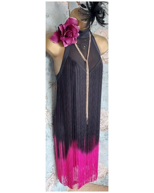 Women's Pink black flapper tassel 20s gatsby party evening dress 8