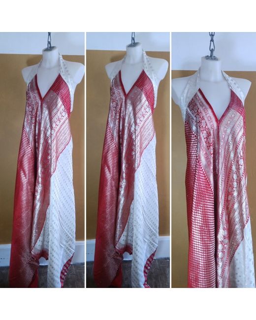 A gorgeous one of a kind handmade saree silk Dress. Very flattering style. Hang to dry. Handmade One off creation. The dress can be altered to your height.