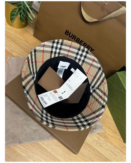 No bag or box included just hat Crafted for both style and comfort, this Burberry Bucket Hat is a must-have accessory for anyone who appreciates designer fashion. The medium-sized hat comes in a versatile beige tone that easily complements any casual outfit, making it a great addition to your wardrobe. The hat boasts a lined interior for extra comfort and longevity, ensuring it maintains its shape and fits well even after several wears. Ideal for unisex adults, this piece perfectly captures the essence of laid-back luxury, making it a timeless choice for any occasion.