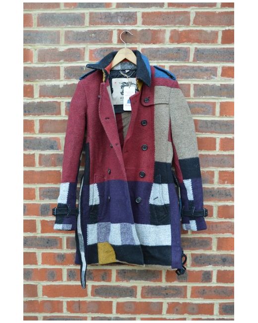 Pictures are of actual item. Size: UK8 EU36 US6 IT40. Ladies Patchwork Colour Block Wool Kensington Trench Coat. Two waist pockets, belted at the waist, belted at the cuffs with single back vent. Partially lined.