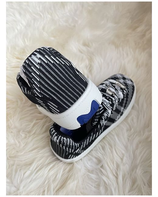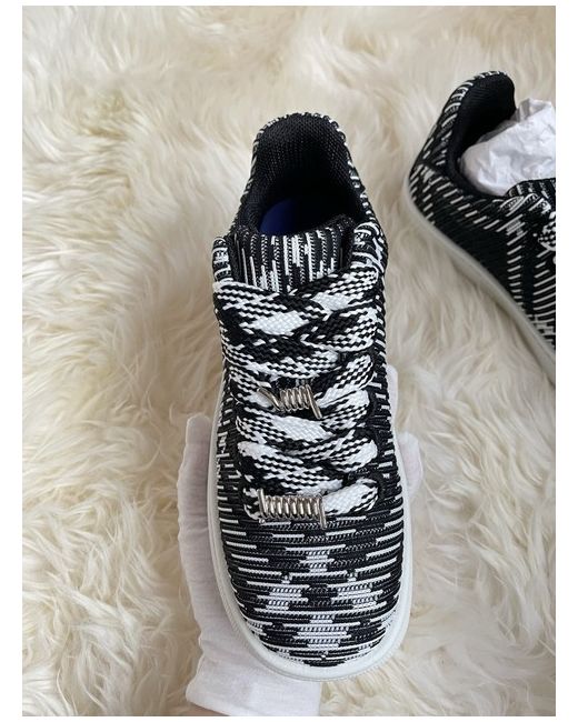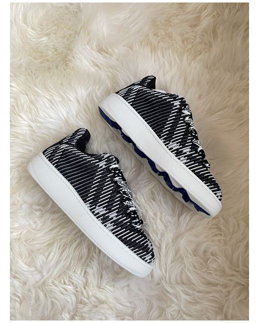 Appearing in classic black and white tones, Burberry's Box sneakers are characterised by their knitted upper. Outer: Polyamide 98%, Polyester 70%, Brass 30%, Elastane 2%. plaid check pattern. flat rubber sole.