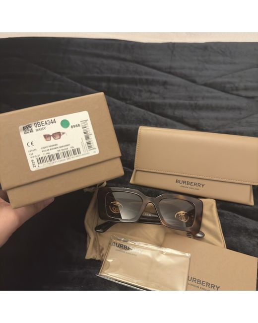 Enhance your fashion style with these Burberry Daisy sunglasses designed for women. The tortoise shell polarised lenses provide perfect protection against the sun's glare while the square style frame in brown colour adds a touch of elegance to your outfit. Sunglasses come with cleaning cloth, care booklet and cases as seen in the pictures. Proof of purchase available on request. RRP £263.