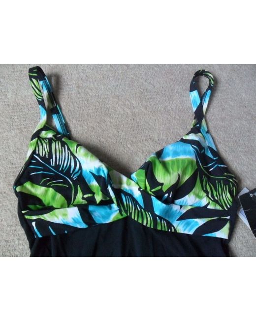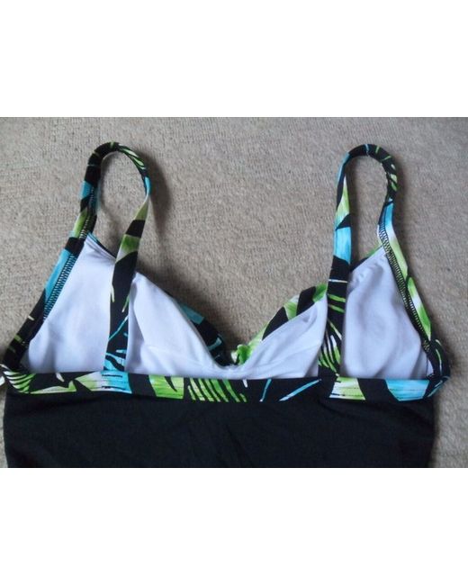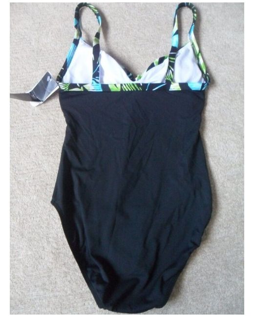 1 x M&S ladies black/blue/green mix leaf print, strappy non-wired gently padded swimsuit to fit size 8. Made from beautifully soft material with a black mix colour and strappy design, it is comfortable & stylish!