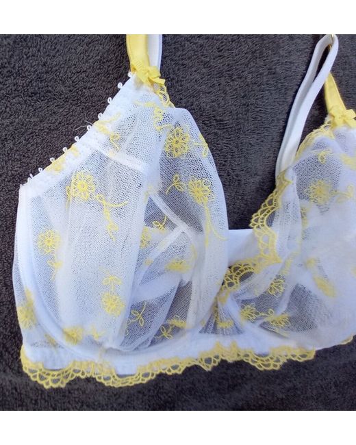 32D 34C 36C Plunge Bra Underwired Lightly Padded Embroidery MS