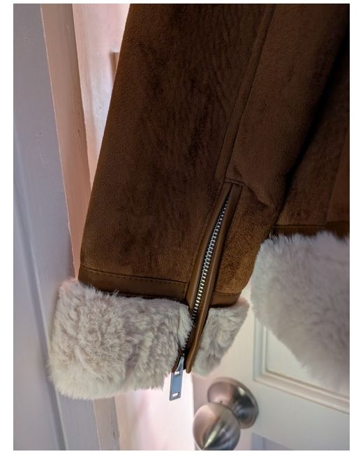 The Next Women's Aviator Jacket in size 14 is a stylish and practical choice for the autumn and winter seasons. Made from faux leather with a faux fur lining, this short jacket features long sleeves and a zip closure for added warmth and comfort. The brown colour and fur trim accents add a touch of sophistication to the classic aviator jacket style, making it a versatile piece for any woman's wardrobe. Perfect for layering over outfits, this regular fit jacket by Next is both fashionable and functional. Bought as Christmas present but too big. brand new condition never worn.