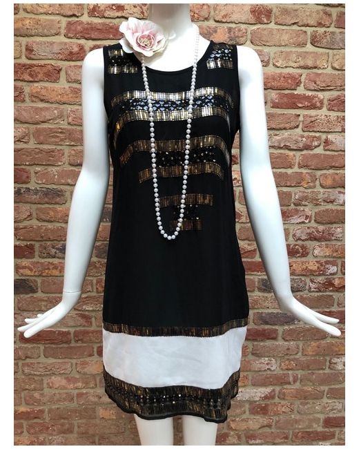 Women's White Black Sequins Flapper Gatsby 1920s Inspired Party Dress 10 BNWT
