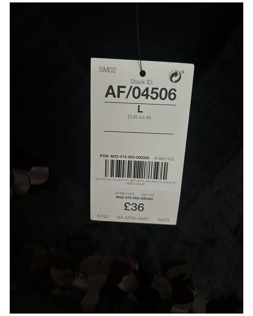 Beautiful black sequin tank top / knitted acrylic / sequin detail v-neck jumper. It’s a NEXT Large but I would say it’s on the large size and would fit a size 16 loose and baggy and an 18-20 still relaxed but not skin tight at all. I’m an 18 /42” chest and it fits comfortably. Just decluttering and it’s been in my drawer for a year. Don’t go out to that many parties anymore so time for someone else to look great in it. Was £36 new - as you can see from tags.