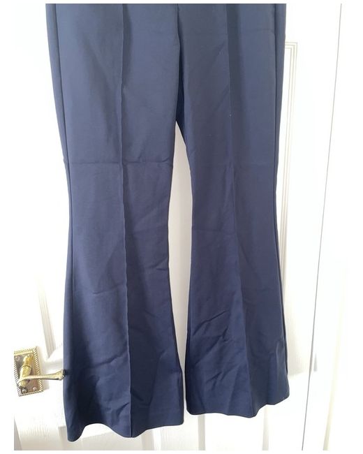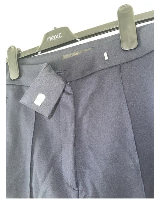 Elevate your office wardrobe with these stylish navy bootleg flared trousers from NEXT. Tailored to perfection, these dress pants feature a pleated front, faux pockets and a high-rise waistband with a button, zip and hook & eye closure. The bootcut leg style and regular fit make these trousers comfortable and flattering for any body shape. Made from a blend of polyester, cotton and elastane, these trousers are machine washable and easy to care for. Perfect for any occasion, from workwear to weddings, these trousers are a must-have for any fashion-forward woman. With a waist size of 75 cm and an inside leg of 78 cm, these trousers are true to size and a great addition to your collection.