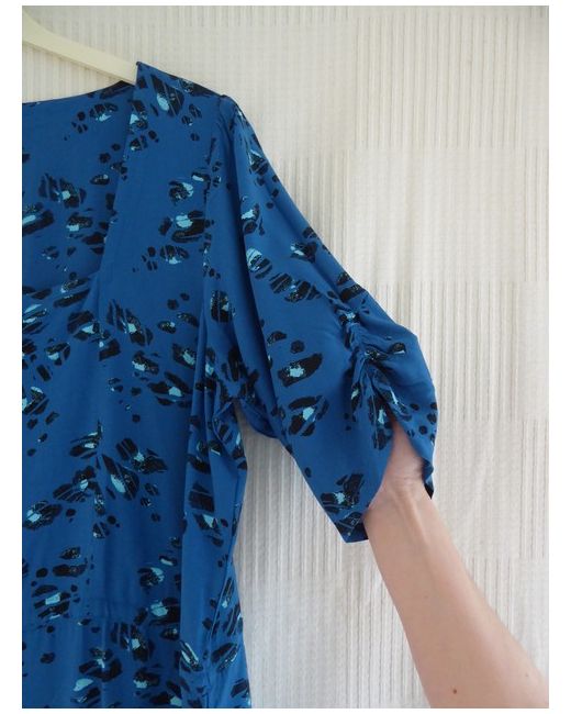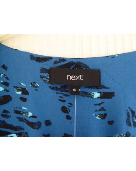 Next turquoise blue / multi dress. I would describe the colour as Turquoise Blue / Multi. Button through from neck to waist - lovely fabric covered buttons. Item is a short sleeve dress. NOTE Material has NO Stretch.