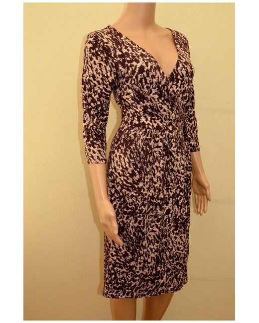 Women's Beige New Berry V Neck Jersey Patterned Wrap Dress Sz UK 10