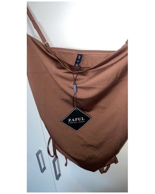 Women's Brown Zaful Cowl Neck Drawstring Cami Top
