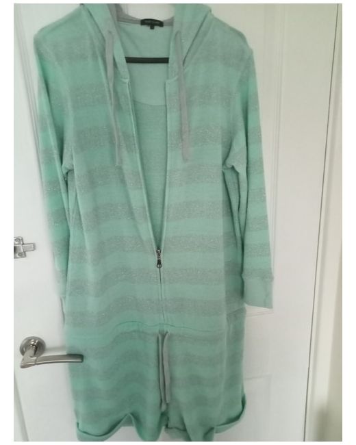 Mint/Silver Glitter colour 100% Polyester Size L would fit size 12/14 Waist drawstring Hooded