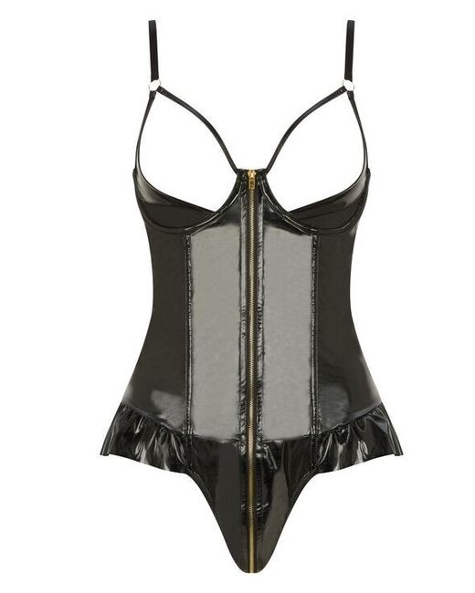 Feel confident with the open cup detail and use the central zip to easily slip in and out. Nipple pasties not included. Main Fabric 100% Polyurethane. Gusset 100% Cotton. Model wears size S.