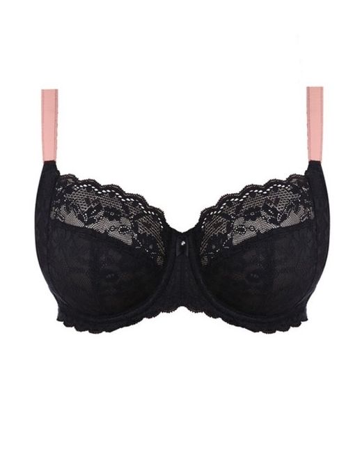 Uncover Freya's much-loved Offbeat Side Support Bra in Black, crafted from an intricate floral lace with feminine blush strap detailing. The side support style is crafted with a four piece cup to create great uplift and forward projection in sizes D - K.