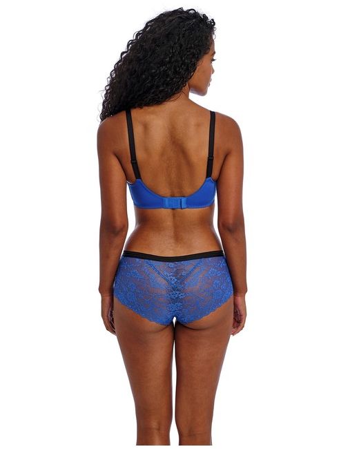 Underwired with side support for forward shape and uplift. Pretty stretch lace cup, lined in the bottom.