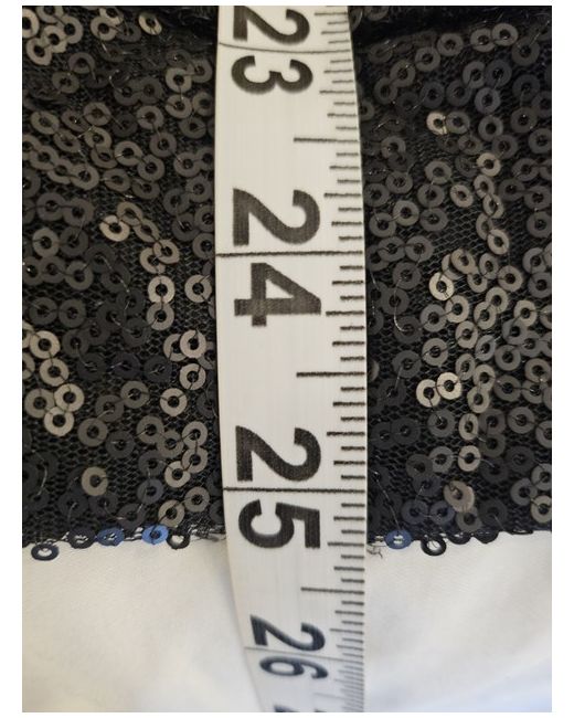 very dressy sequin black top. mock wrap effect to v neckline. measurements : width 54 inches / 25 inch length.