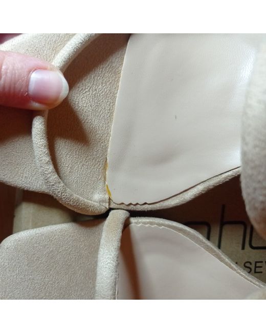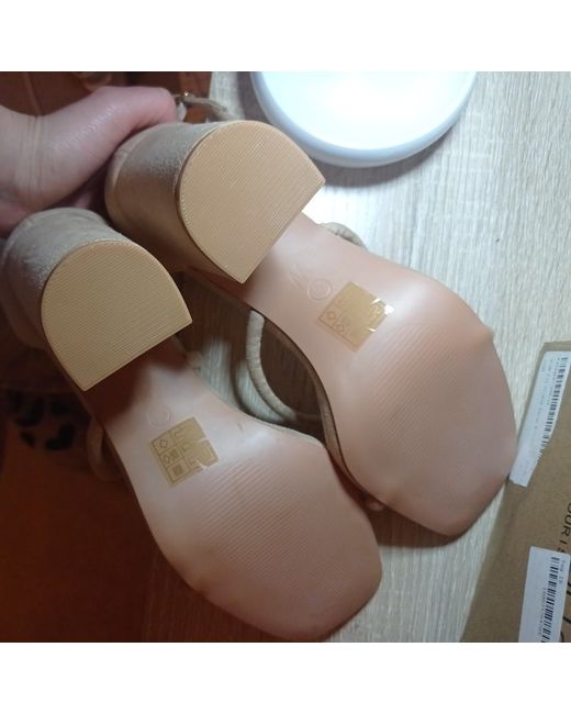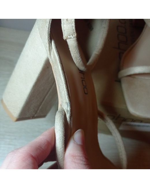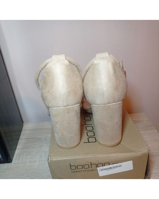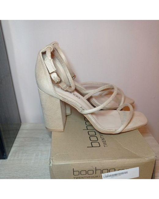These beige suede strappy heels are a size 6, making them a stylish choice for women's footwear. The brand is Boohoo, known for trendy and fashionable items. Perfect for adding a touch of sophistication to any outfit, these heels are ideal for various occasions. Made from suede, they offer both style and comfort, making them a versatile addition to any woman's shoe collection.