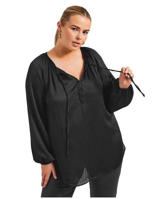Fit & Fashion Notes: The blouse that can take you from desk-to-dinner in style. Made from a comfortable woven fabric, this blouse features a tie detail notch neckline, three button placket and long cuffed sleeves. Pair with trousers and heels for an elevated evening look. Why We Love It: Perfect for your upcoming evening plans.