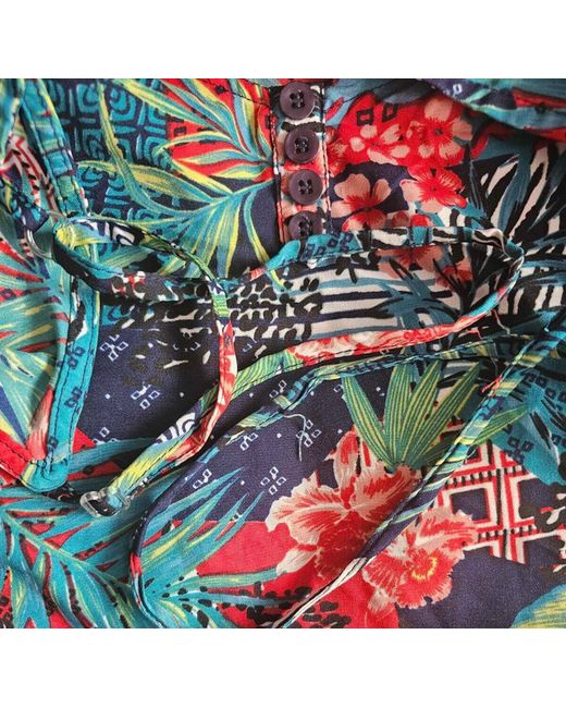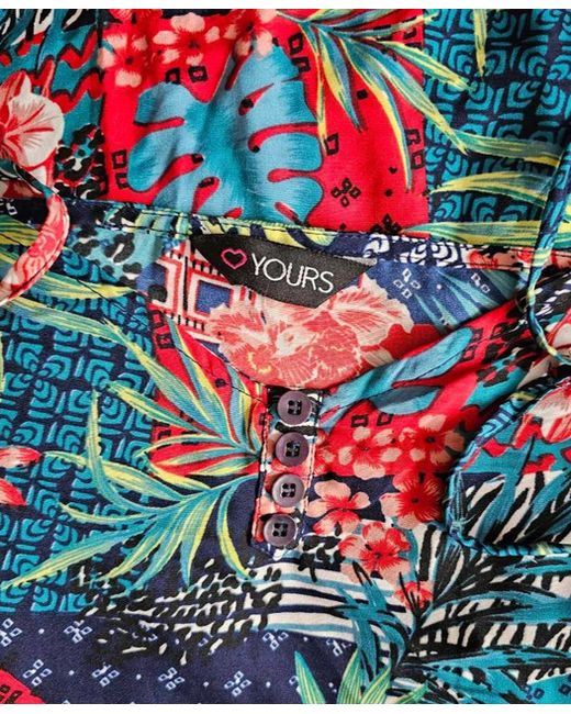 This beautiful camisole top features a stunning multi coloured floral design inspired by nature. The fabric is made of a polyester blend with a satin finish, ensuring a comfortable and stylish feel. The V-neckline has four small buttons and adjustable straps add a touch of elegance, perfect for any occasion. It has shoulder straps not visible in main picture, they are seen in the last picture. The top is quick-drying and non-iron, making it ideal for hot summer days or autumn. It is a size 30/32, with a regular fit and sleeveless design. Made in India, this top is perfect for anyone who loves nature-inspired fashion. Bright vibrant colourful flowers and leaves.