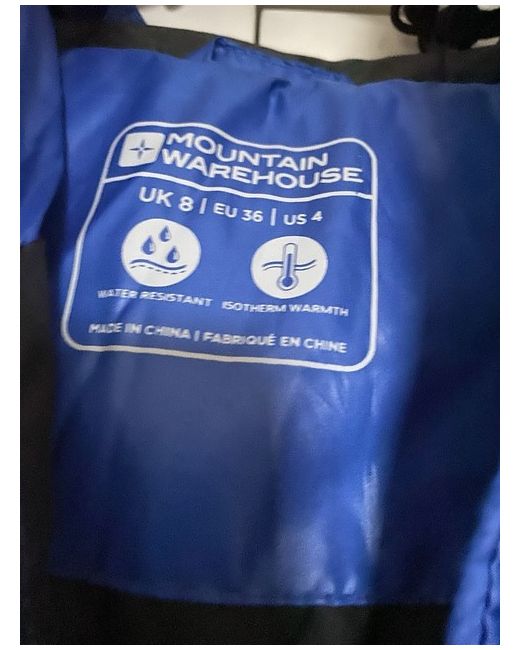 Stay warm and stylish with this blue puffer jacket from Mountain Warehouse. Made with water-resistant outer shell material, this jacket is perfect for women who love to stay active. The jacket is designed with a regular fit and is available in size 8. The jacket features a stunning blue colour and is perfect for any occasion. Whether you're heading out for a hike or running errands, this Mountain Warehouse jacket is a must-have. Don't miss out on the opportunity to add this stylish and functional jacket to your wardrobe. Temperature rating -20c Brand new with tags PayPal only