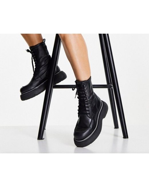 These black Topshop boots are a UK size 5, made of leather, and have a sneaker style. They are new with box, making them a stylish addition to any woman's wardrobe.