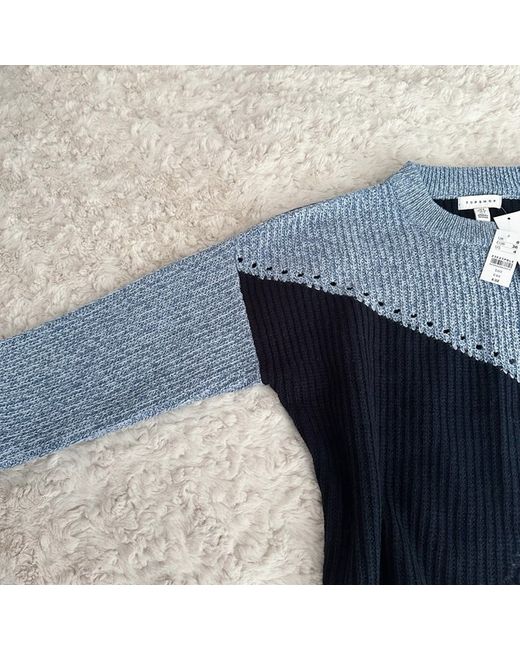 Women's Blue Asymmetric Patchwork Knitted Cropped Jumper UK 8 NEW BNWT 32
