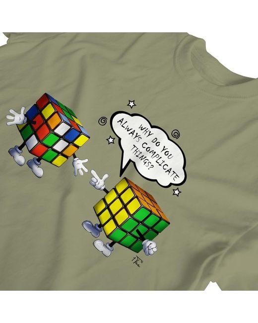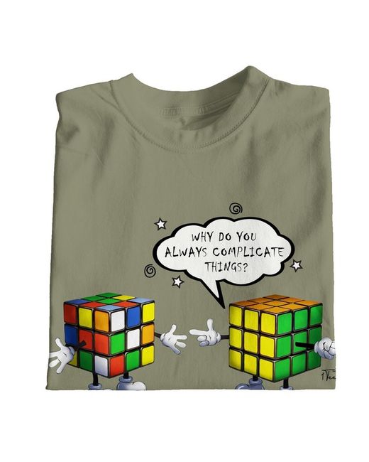 This funny t-shirt features two Rubik's cubes, discussing why the other always makes things complicated. We have to say we agree! The perfect t-shirt for your Rubik's cube loving friend. We use the latest printing technology to ensure prints will not fade or crack after washing.