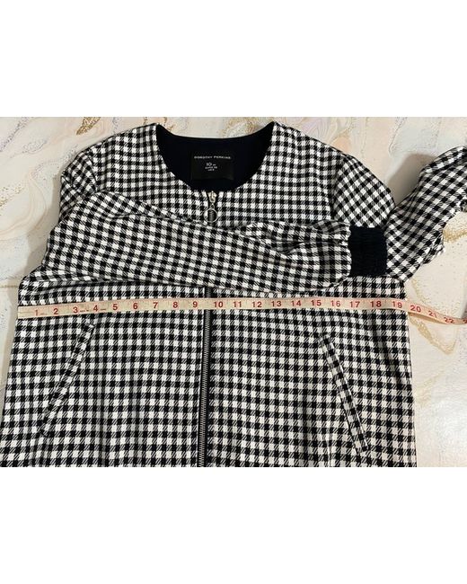 This stylish and versatile Dorothy Perkins Jacket in size 10 is a great addition to any wardrobe. Made of polyester, it features a check pattern and a zip closure. The jacket is lined and lightweight, making it perfect for travel, parties, and even workwear. It also comes with pockets for added convenience. The jacket has a relaxed fit and is suitable for casual and formal occasions. It has a classic and 90s theme, making it a timeless piece. This jacket is perfect for the autumn, summer, and spring seasons. It is made in China and is a basic jacket style.