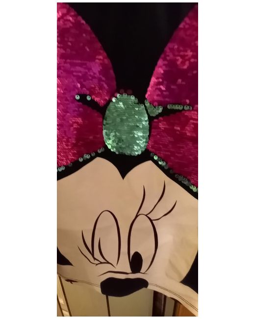 This Asda George Disney Mickey Mouse Sequin Front Top in size 16 is a stylish and fun addition to any woman's wardrobe. Made from a comfortable blend of polyester and cotton, this short sleeve t-shirt features a crew neck and is adorned with black and white sequins in the iconic Mickey Mouse design. Perfect for travel or casual wear, this regular fit top offers a playful touch to any outfit with its colourful accents and trendy brand.