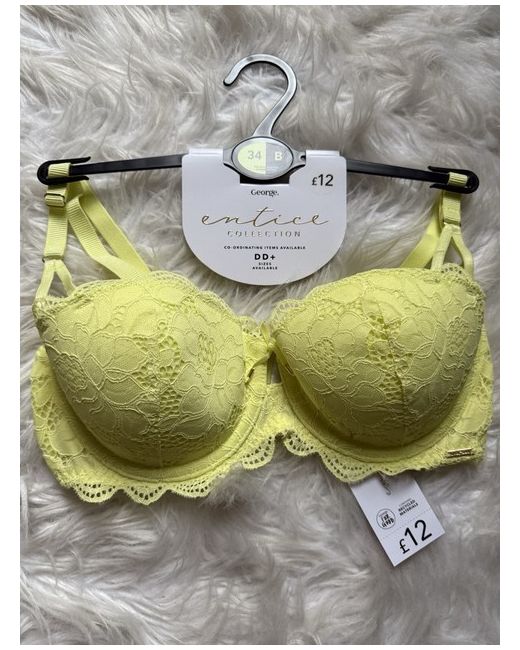 Entice Collection Lemon Underwired Padded Lace Bra 38DD