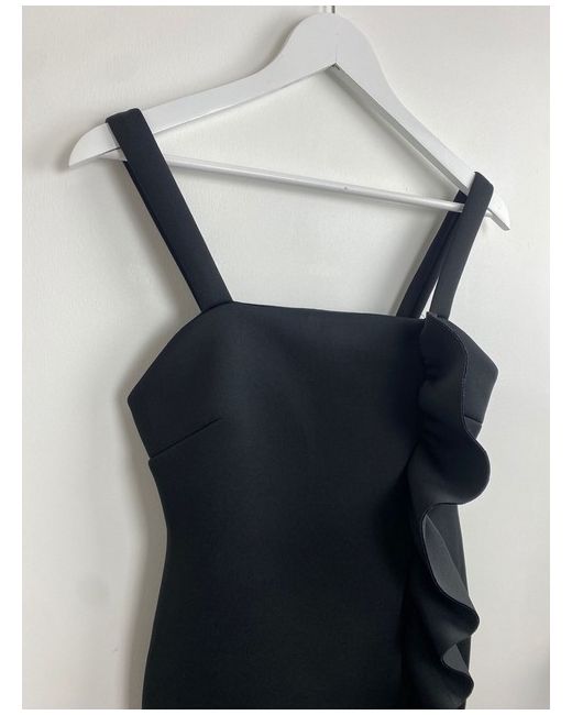 Women's Black DESIGN Ruffle Detail Cami Mini Structured Dress UK 10